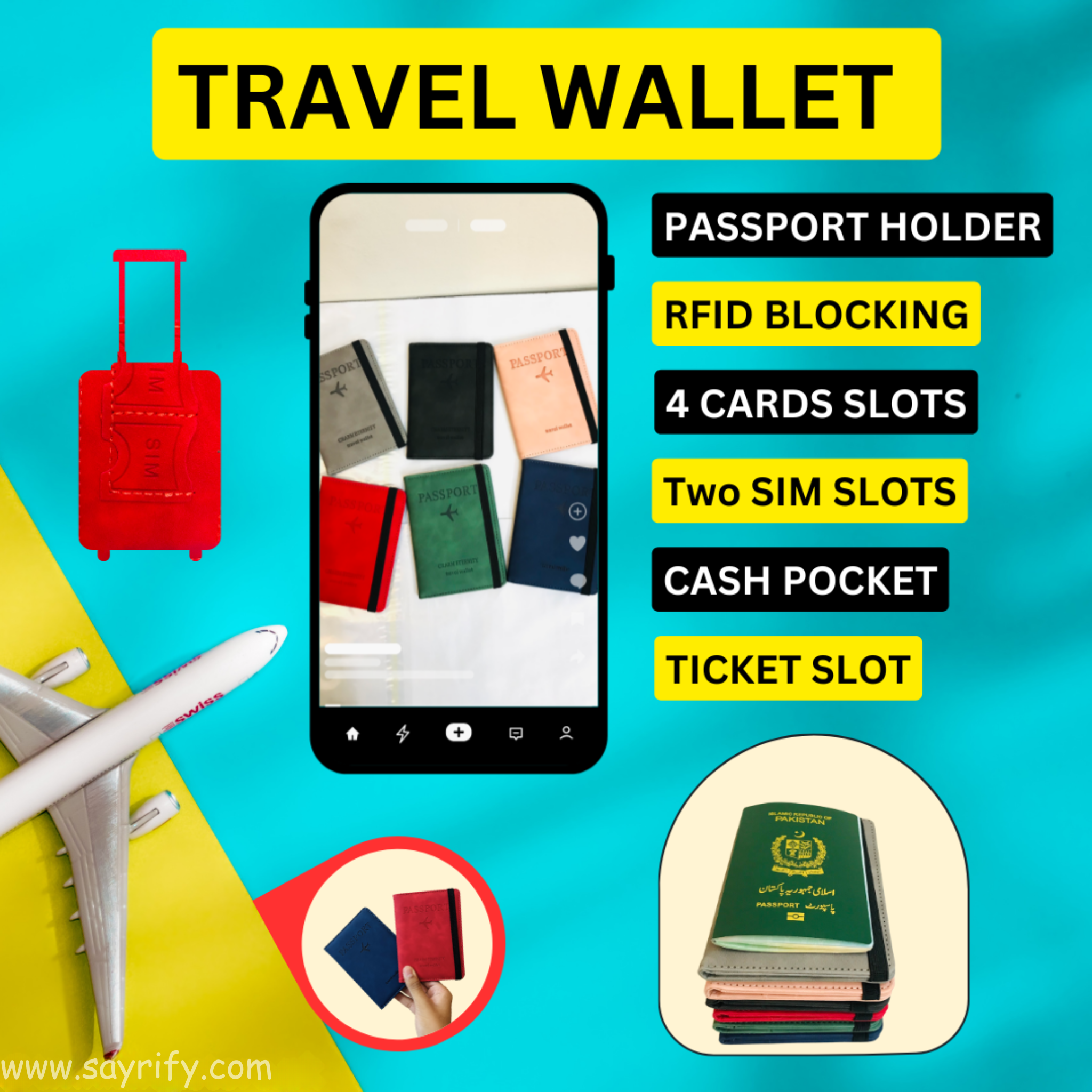 Discover the ultimate travel essential The Travel Passport Wallet, now at Sayrify! With RFID protection, slots for cards, SIMs, cash, tickets, and passports in 7 stylish colors, it’s the perfect travel companion. Plus, enjoy exceptional customer service with every order!